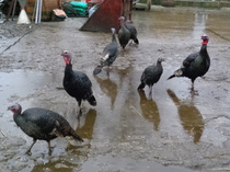 Gestern zog ein altes Gänsepaar mit ihren drei Adoptivhühnern bei uns ein, die Truppe fühlt sich sichtlich wohl, sehr schön!