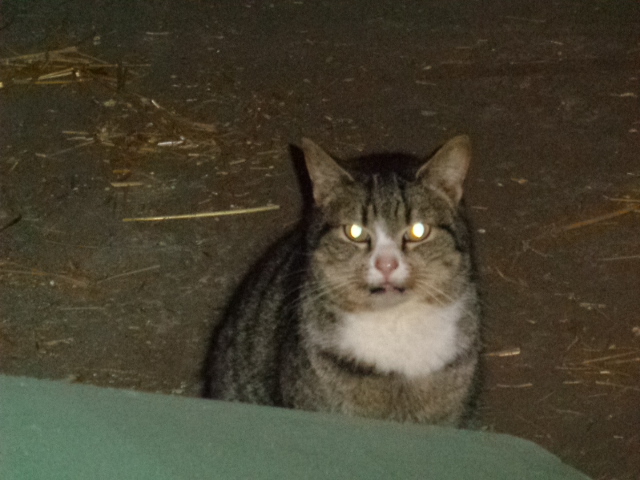 Heute hatten wir einen Gast, der sehr hungrig war, zudem sehr scheu, aber nur gegenüber Menschen. Sollte er morgen noch da sein, werden wir versuchen zu bestimmen, ob es ein unkastrierter Kater ist, das hiesse Alarm. Ansonsten Montag zum Tierarzt, Check, Chip suchen und nötige Dinge machen lassen. Es sei denn, es findet sich ganz schnell ein Besitzer, oder aber, das Tier ist eben weitergezogen!