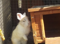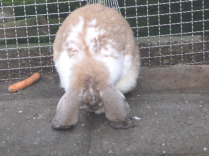 Es gibt Dinge, die muß man nicht verstehen, möchte man auch gar nicht! Warum müssen Hasen Schlappohren haben??? Weil viele Menschen das *süß finden*?! Unbegreiflich! Nicht nur, daß Daisy keine Gesellschaft kennt, ausser eigene Babies und mit dem freien rumhoppeln zuerst nichts anzufangen wusste, ist sie Opfer ihrer gigantischen Löffel! Sie kann sich nicht richtig putzen, nicht ebenerdig fressen, tritt sich ständig auf die Lauschlappen und hat diese dauernd vor den Augen hängen. Das ist alles andere, als schön und nun versuchen wir, ihren Lebensraum danach einzurichten und hoffen, sie findet Wege, mit ihrem Handycap umzugehen.