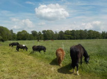 Mutige Aussage: juhu, es ist Frühling! Das zerstörte Dach konnten wir zackig erneuern, die meisten Paddocks sind wieder nutzbar und dieses Wochenende düngen wir die Flächen. Im Anschluss beginnen wir die Sanierung des "Ponyknasts" (ausbruchsicheres Shettypaddock), Sand und Bagger sind bereits da, tschakka! Leider hatten wir zwischendurch auch Pech, ein älteres Sorgenpony mit Zahnproblemen und Atemnot und eine fies fette Euterentzündung bei unserer Sissy. Ziemlich aufwendig, aber unsere Patienten sind tapfer und auf dem Wege der Besserung, das ist das Wichtigste! Ansonsten anweiden, Zäune basteln, entwurmen, Winterfell beseitigen, usw, wer Pferde hat, weiß, wovon wir da reden ;-) ! Es ist mittlerweile schon ziemlich lange hell draussen, gepaart mit Luxuszustand Trockenheit macht das doch ganz schön was aus. Es wäre super, wenn es so weitergehen würde!