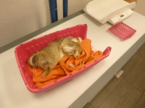 Alles lief nach Plan, genau so, wie der Tierarzt es verordnet und vorhergesagt hatte. Natürlich deutet man dann 50:50 als YES, aber es hatte nicht sollen sein und Herr Mümmelmann verließ uns letztendlich kurz und schmerzlos. Fraglich, für wen es grade härter ist, für uns, oder Frau Mümmelmann, die sehr trauert und ihn überall sucht. Ein Häschen kann man nicht wirklich trösten, tut schon arg weh...!