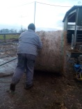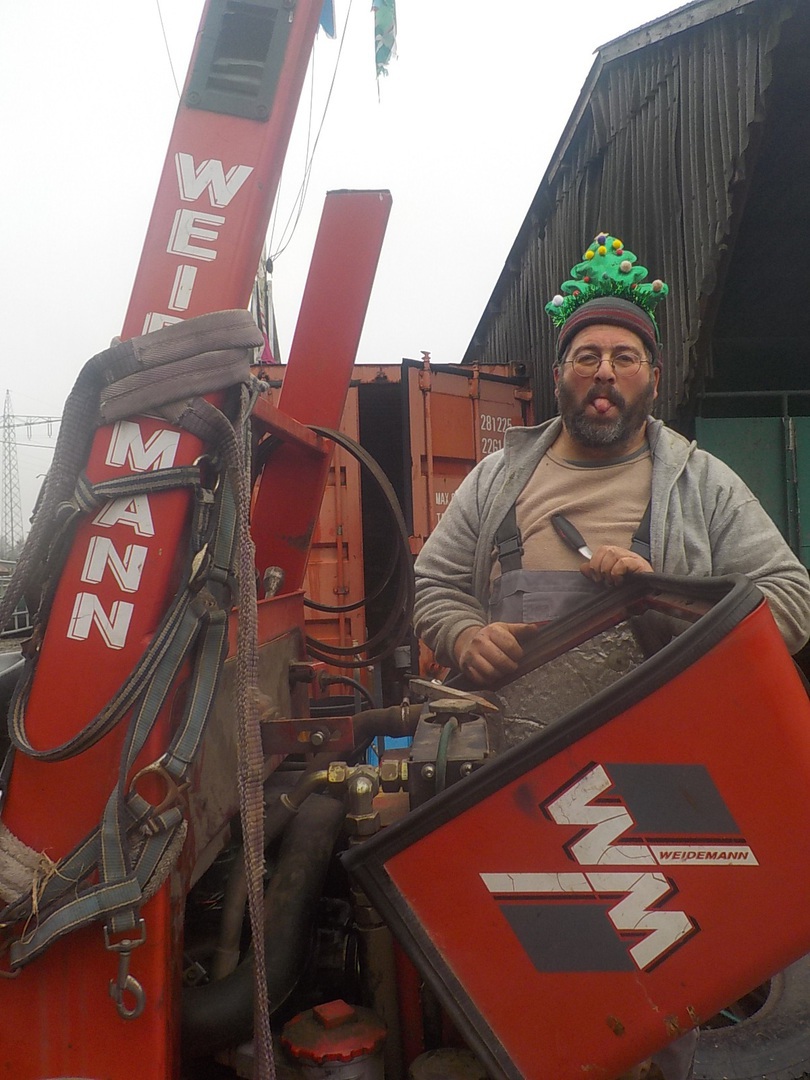 Wenn man wegens fieser Friese nix sieht, wegens Doppelstrickmütze nix hört und wegens Zwiebellook seine eigenen Ausmaße nicht kennt, sollte man auf dem derzeitigen Schlick nicht umherhüpfen, als sei man zwanzig! Gebrochen ist nix, aber Riefen und Quetschungen piesacken dem Knall entsprechend. Wer also einen Rollator mit Cross-Country-Bereifung, Wetterdach und Überrollbügel übrig hat: Bescheid geben, wir holen ab, passt noch mit auf den Hänger für das U-Boot! Halb so wild, viel schlimmer ist, daß der Hoflader genau am Wochenende erneut erkrankt ist und alles per Hand gemacht werden musste, was Flitzefeuerzahn sonst für uns erledigt. Einiges kann man nicht selbst bewältigen, aber morgen kommt der Landmaschinenarzt. Da seht Ihr mal, wie erholsam so ein Blogloch ist, wenn die Irren vom Hof sonst nur noch jammern ;-) ! Die Tiere interessiert sowas alles zum Glück nicht, die haben dann was mehr zu gucken und zu lachen. Wir wünschen Euch eine stressfreie Vorweihnachtswoche und futtert nicht so viele Kekse!