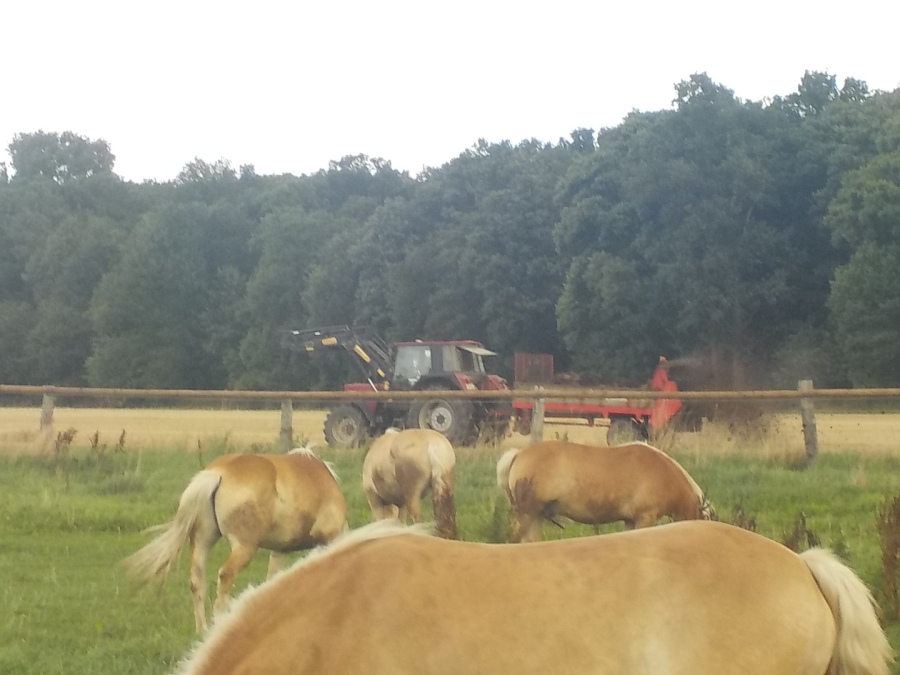 Stroh pressen, jammern, freuen, Sonne, Regen, von allem was. Das Wochenende ist straff verplant, hoffentlich gehen die angesagten Unwetterchen an uns vorbei! Die Friese sitzt schon wieder recht gut, dafür reichen wir gerade die Midsommarerkältung im Kreis. Hatten uns schon gefragt, wieso Wick im Sommer Reklame für Medinait fährt, jetzt wissen wir´s...