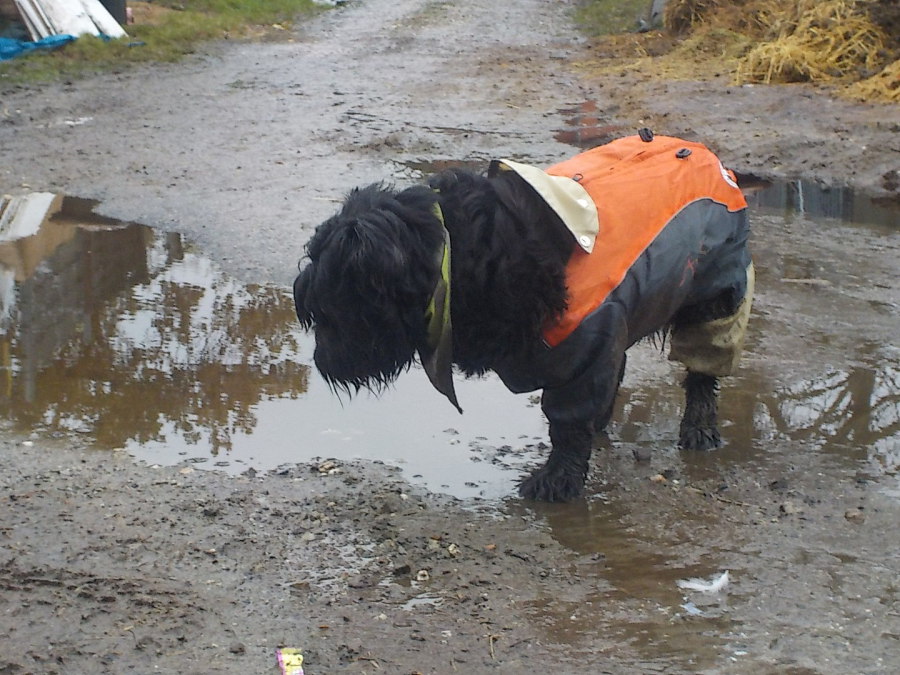 Vergesst das Lightgeheule von Samstag, das war nur vorglühen! Tagsdrauf da ging´s erst richtig los und wir kamen und kommen uns vor, wie in einem schlechten Endzeitfilm! Den Tieren hat´s nichts ausgemacht, die kleinsten Kleintiere mussten wir allerdings evakuieren, das hat es so noch nie gegeben! Da bekommen "Winter", "Landleben" und "Nässe" eine ganz neue Bedeutung...! Ekelig, einfach nur oberekelig! Und wie wir uns heutemorgen so fragen, was denn nu vom Ganzen am schlimmsten ist, schreit ein dicker Zahn aus Hofherrns Backentasche: "ICH!!!". Nunja, dieser musste dann, wegen seines unmöglichen Benehmens, wenige Stunde später den chef´schen Oberkiefer verlassen und so kam zu ekelig auch noch AUA hinzu! Nach Petrus ist die Zahnfee dieses Jahr unsere grösste Spaßbremse! Die Liste der Aufräum- und Reparaturarbeiten wächst, unser Humor schrumpft, aber wichtig ist, daß die Tiere gut durchkommen, solange wir das hinbekommen, ist alles drumrum drietegal. Absolut Nötiges schaffen wir nebenbei, der Rest muß eben warten, es wird nicht ewig so übel wintern! Hinfallen, aufstehen, Krone richten, weitermachen! *hatschiii*
