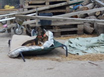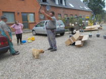 Kennt Ihr das?! Mal alles, was weg soll, auf einen Haufen legen und dann eben wegschmeissen. Nach einer halben Stunde und zweimal Leiter ausziehen googelt man dann "Kletterausrüstung ausleihen", um noch irgendwie an die Spitze des Müllbergs zum weitertürmen zu gelangen. Wo bitte kommt so viel Zeugs her??? Und warum verschwindet es nicht einfach dahin, wo auch die ganzen linken Einzelsocken sind??? Bitte nicht antworten, wir haben da selbst schon so ´ne Ahnung...! Es geht vorwärts, das ist die Hauptsache! Die Tiere haben Spaß beim zusehen, am schönen Wetter und an den Futterspenden, die sie von Euch bekommen, alles in allem: Läuft!!! Kann sich jederzeit ändern, aber heute hauen wir auf die Brause: Läuft!!!
