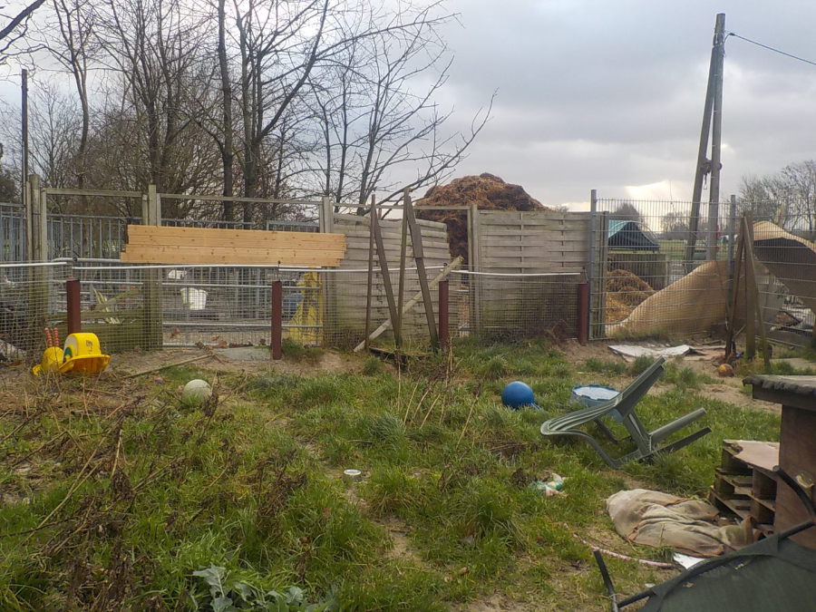 Die beste Band der Welt besingt es treffend und direkt: "...und immer mitten in die Fresse rein...!". Wir waren vor dem Donnerstag gewarnt und vorbereitet, aber daß es SO scheppert...?! Kalauer des Monats: Freitagmorgen stehen Fremde auf dem Hof und rümpfen fies die Nase, es sähe bei uns ja "wild" aus. Hmh, Kunstpause und mal kurz überlegen, wie es auf einem über hundert Jahre alten Hof im Aussenbereich nach einem Orkan und vorherigen Regenmassen wohl aussieht! Wir jedenfalls waren fix und fertig und einfach nur froh, daß es keine größeren Personen/Tierschäden gab, denn es war der blanke Horror! Mittags ging´s dann weiter mit unwetterartigen Eskapaden, die die Tiere allerdings schon als light empfanden, Zwerg Frost jetzt nicht so.Aber wisst Ihr was?! Augenringe passen totaaaal gut zu fiesen Friesen...