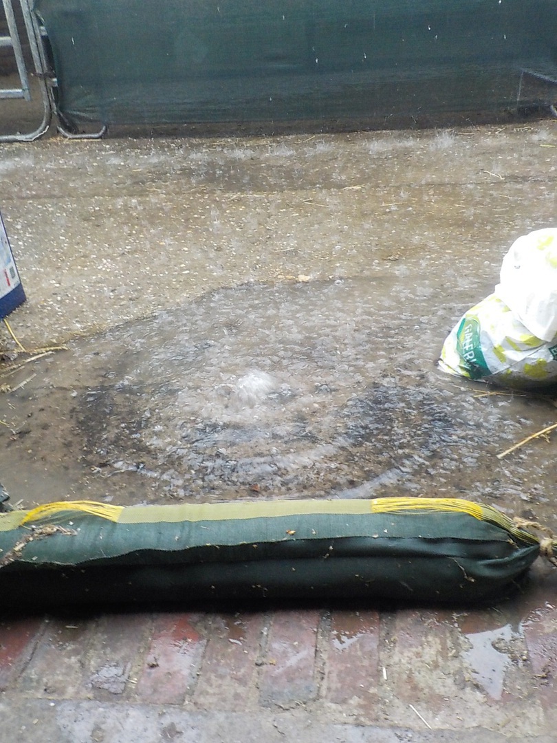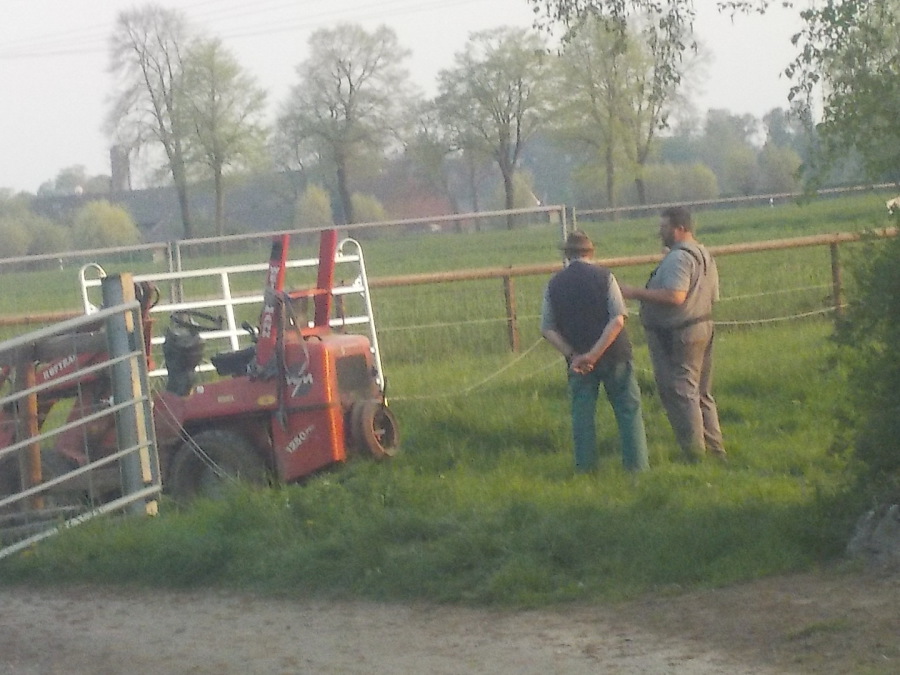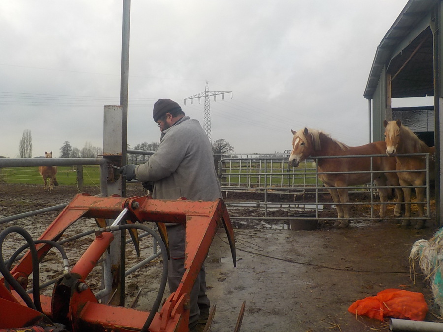 Wenn man sich auf den Wetterdienst verlässt, ist man verlassen, aber sowas von. Sämtliche Landwirte und Pferdeleute weit und breit sind auf Krawall gegen die Klimakenner, die ausser singen und klatschen eher wenig können. Heute der erste, kollektive Versuch der Schadensbegrenzung. Mittendrin dann ärztliche Spontanversorgung nötig, erst für Giftzwerg1, den mit der fiesen Friese und dann für Giftzwerg2, den kriminellen Einhufer ohne Benehmen, totales Rätsel sowohl für uns, als auch für den Docteure. Ausgang aller drei Vorkommnisse ungewiss, ein rundum gelungener Tag...