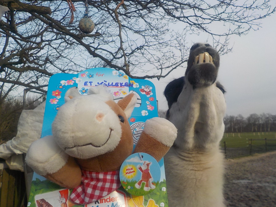 Leute, hat das geräumt über´s Wochenende! Mit einem superfleissigen Trüppchen aus family & friends sind wir einen Riesenschritt aus unserem persönlichen Sturmtief gekommen und überglücklich über den Fortschritt! Wenn wir weiter so vorwärts kommen, reduziert sich die Jammerei deutlich, unsere Gelenkschmiere zwar auch, aber wir haben ja eine gut bestückte Stallapotheke! Gut, daß wir grad so abartig müde sind, so bleibt uns vielleicht die schlaflose Nacht erspart, denn morgen geht´s mit Katerchen wieder zum Docteure, zur Besprechung der Diagnose und der angedachten Therapie. Einige von den alten Pferden sind auch etwas befundlos wirr, wir hoffen natürlich stets auf ein Formtief, aber ab einem gewissen Alter weiß man nie, was morgen ist...! Nun seid Ihr dran: Daumen drücken, daß unsere gute Zeit anhält, einige liebe Menschen den Osterhasen für unsere Tiere spielen und wir dieses Jahr ein gutes Erntejahr haben werden! Und jetzt alle brav im Chor: TSCHAKKA!!!!!!!!!!!!