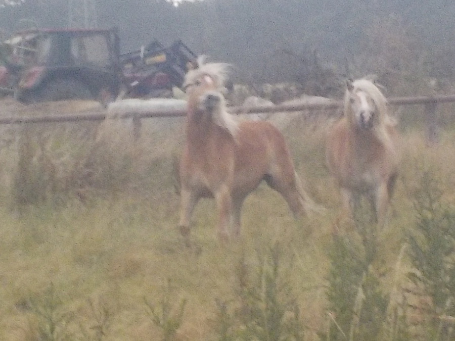 Die kommende Nacht hat eine Stunde mehr, das wurde eigens so gemacht, um uns endlich wieder Zeit für´s Netz zu verschaffen. Oder so ähnlich jedenfalls! Wir beseitigen gerade den Sommerapfelberg, denn die Mistfrist läuft in Kürze ab; wir bereiten den Hof auf den Winter vor und lösen gerade das Sommercamp auf. Alle Sommercamper kommen nun nachts wieder rein, die Umstellung ist immer auch Umgewöhnung und kostet etwas Extrazeit. Die Spuren der grossen Dürre sind auch noch nicht vollständig verwischt und die mittlerweile ziemlich gefallenen Temperaturen bringen ein wenig Rumgeheule menschlich-weiblicherseits, aber sonst bisher keine nennenswerten Katastrophen - toi, toi, toi! Einige Reparaturen warten noch dringend auf Erledigung, die große Alle-Tiere-entwurmen-Aktion steht bevor, die Erntehelfer müssen durchgeschmiert und eingewintert werden, mit Winterfell schmoddern sich die Pferde doppelt so gerne ein und ab morgen ist es früher dunkel. Gewonnen...! So beginnt aber jeder Herbst, also kein Grund zur Panik, einfach hoffen, daß keine Sturmflut, oder sonstwas Fieses kommt! Wir wünschen Euch einen schönen Sonntag und auch einen schönen Feiertag, falls wir uns vorher nicht mehr lesen ;-) !