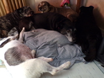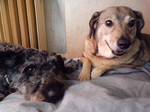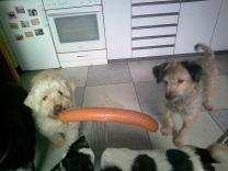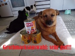 Freud und Leid liegen ja bekanntlich nah beieinander. Eigentlich gab es heute allen Grund zu feiern. Der Zizi, der als totales Wrack bei uns ankam und zuerst scheinbar keine Chance mehr auf Leben hatte und die Behandlungen und Medikamente dann doch noch anschlugen, er aber wegen des hohen Alters und der Werte auf maximal sechs Monate Lebenserwartung geschätzt wurde, ist heute genau zwei Jahre bei uns! Ja der Zizi, der kleine Terrorist! Dafür hatte gestern der Bodri seinen ersten Tierarztbesuch, alles mögliche untersucht und gemacht und ein paar Stunden später gab es dann die ersten Blutwerte. Um die zwerg´schen Nerven zu schonen hat seine Leibärztin dann das Wort Katastrophe vermieden und erstmal sämtliche Schrecklichkeiten als *aufällig* bezeichnet, heute dann wieder zur Praxis gerauscht, um Medikamente zu holen, da sofortiger Handlungsbedarf besteht. Die Ergebnisse vom Fremdlabor stehen noch aus, wir möchten gar nicht wissen, was da noch kommt...! Wir haben das Sprichwort dann einfach angepasst und *Aus Leid mach Freud* draus gemacht und Zizi hat sein Geschenk bekommen, es gab Leberwursthäppchen für alle und egal was kommt, wir feiern, daß der Bodri bei uns ist und eine arme Seele weniger in der Tötung, oder auf der Strasse sonstwie zu Tode kommt, oder in einem siffigen Massenshelter vor sich hinvegetiert und elendig verreckt, verhungert, oder totgebissen wird! Die müden Partylöwen träumen grad davon, wenigsten ein bißchen gegen das Elend tun zu können, deshalb arbeiten, kämpfen und sammeln wir weiter für die tierischen Opfer dieser kranken Welt!!!