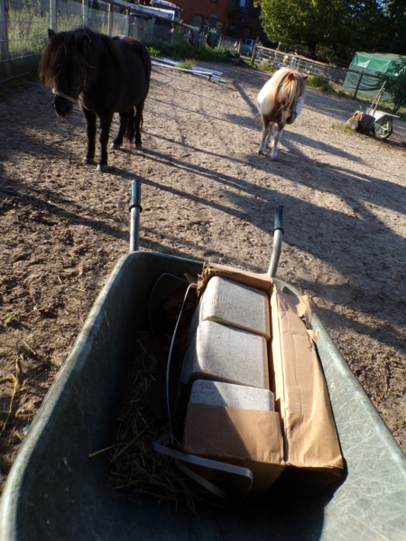 Da kam doch tatsächlich die Sonne, wenn auch bis gestern gepaart mit eisiger Kälte, was uns per Kickstart aus dem "Winterschlaf" riss. Weiden ganz neu einzäunen, Winterschäden reparieren, Flächen düngen, abreissen und aufbauen, Einstreu beschaffen geht auch nur bei Trockenheit, wir sind mit allem Möglichen dran und nutzen jede Minute, wer weiß, wann es wieder endnass wird! Ausserdem muß das alles ja neben den Vollzeittieren und einem Vollzeitjob laufen, Zeit ist also wie Gold für uns. Unsere Aktionen sind uns auch sehr wichtig und dazu gibt es einen Neuzugang im Haus der Hoffungslosen...