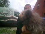 Eine anstrengende, aber glückliche Woche geht zu Ende. Letzten Sonntag waren wir kurz davor, mit unserem Neuzugang zum Notdienst zu fahren, weil er sehr schlecht drauf war und kaum stehen konnte. Die Transportbegleitung hatte bei Ankunft schon große Sorge geäussert und uns ein herzzerreissendes Beispiel von Strassentierelend übergeben. Das Herzlich willkommen Bodri!!! war ziemlich tränenreich...! Wir haben ihm erstmal ganz viel Ruhe gegönnt, ihn dann zum fressen überredet und ihm eine neue Frisur verpasst. Der Filz war so schlimm, daß er nicht mehr häufeln konnte, es war Müll drin und drunter kam ein abgemagertes Etwas hervor, mit Katastrophenkrallen, Narben von Kettenhaltung, Bissen und Mißhandlung. Aber: nun saugt er Liebe, Aufmerksamkeit und Spezialfutter regelrecht auf, versteht sich mit allen prima und lernt in Kürze unsere Tierarztpraxis von innen kennen. Um seine Erstausstattung brauchte er sich nicht zu sorgen, er konnte einfach hier zum Lada, äh Laden gehen und hatte eine Großauswahl an Möbeln, Geschirr und Kleidung. Vielen Dank dafür (auch an Conny ;-) )!!! Was wir nicht für unsere anderen Tiere genommen haben, ist am Mittwochabend, genau wie die Spontanfutterspende (Dankeschön!!!) von morgens, auf den Transport nach Budapest gegangen! Die Stalltiere hatten dann zum Wochenende Kino mit Popcorn, sie sind so dankbar dafür und wir auch!!! Einige, turnusmässige Tierbehandlungen/ Reha waren auch dran und nu sind wir geschafft! Müde, aber doll zufrieden und sehr, sehr dankbar, denn alles Gute konnte nur durch unsere weltbesten Spender passieren! DANKE!!!! Und zum Abschluss dieser emotionalen Woche haben wir geerntet und essen heute gesund und üppig, oder so ähnlich... Morgen geht es dann weiter, mit dem ganz normalen Wahnsinn Marke Zwerg. Schlaft gut und träumt was Schönes! Nachti!