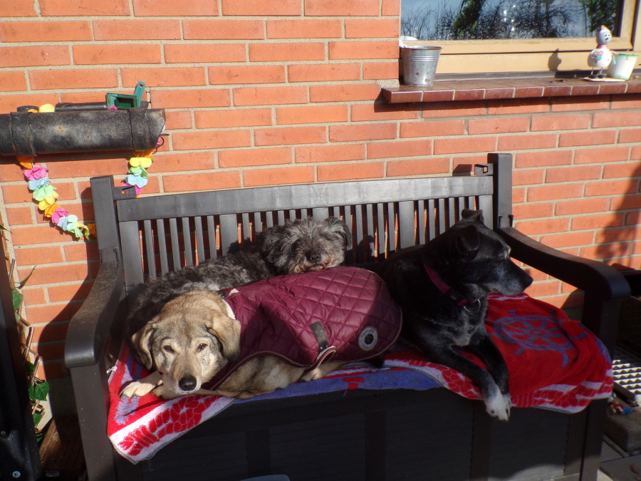 Today we are very sad and very happy at the same time! Sad, because we can´t help so many animals we want to, but better one more, than no more. So we are very happy to give one more poor soul a new home. Our new inhabitant BUNDI is an old Lady from the streets of Hungary with only three legs and a lost tail. Maybe she is ill of cancer, we will know this in a few days, when the result of the bloodtest arrives at our vet. We are fallen deeply in love with her and we hope to have a long, long time together!